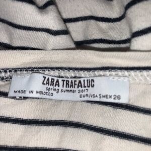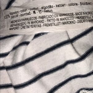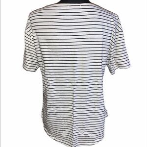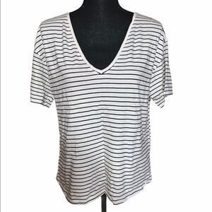 White and black stripe short sleeve top. Hi-Lo. V-neck. 100% cotton. Size: small. Preowned in good condition.