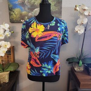 Zara Trafaluc Hawaiian crop top tshirt in women's size S