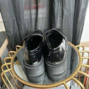 Black Patent leather Chunky Loafers. The most on trend shoe. Easy to pair with many outfits.