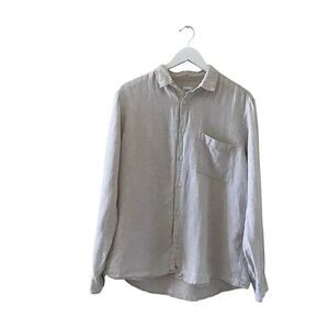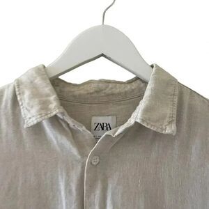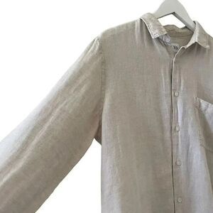 Zara Unisex Linen Relaxed Fit Button Down Long Sleeves Cream Ivory SZ L #1165