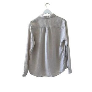 Zara Unisex Linen Relaxed Fit Asymmetrical Button Down Long Sleeves Cream Ivory Blouse SZ L #1165