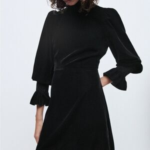 Zara Velour Black Mini Dress Size Medium Statement Arms Gothic Whimsigoth Witchy