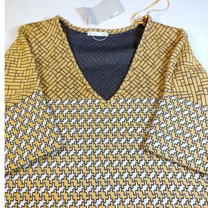 Featuring a modern yellow and white design, this short sleeve top is brand new with tags and ready to wear. Perfect for adding a pop of color to any outfit.