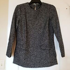 Zara WOMAN Houndstooth top size S. One button closure on back. Long sleeves. Measures approximately 18.5" chest measuring from underarm to underarm and 27" long measuring from shoulder to hem. Faux front pockets, size slits measuring 5".