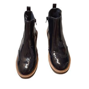 Zara Wingtip Patent Ankle Boots, elastic at sides and inner zipper.