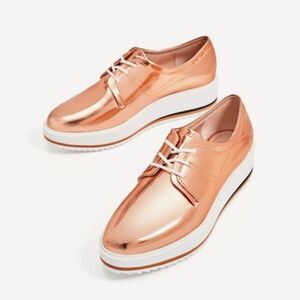 Zara Woman Rose Gold Oxfords, Size 8.5 (39)