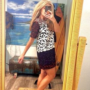 ⭐️Zara,Woman,Color Block-Print,Short Sleeve Dress,Burgundy/Navy/White,Size Small
