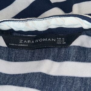 Zara Woman Navy and White Striped 3/4 Sleeve Blouse Size S