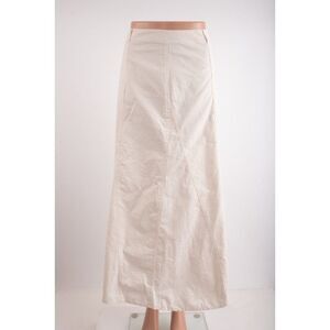 Zara Womans Skirt Size XL Cream Beige Asymetrical Hem 4764/402 NWT. Polyester/polyamide/cotton. Side zipper. One front pocket. Belt hoops but no belt. Slight flare. Asymetrical hemline.