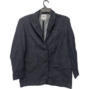 Zara Women Blazer Jacket Denim L Large Dark Blue Lyocell Cotton NWOT