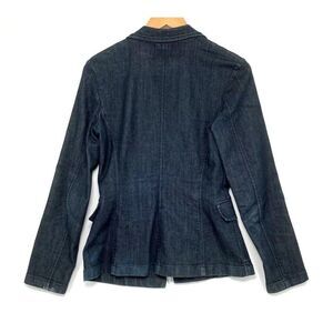 Zara Women Blazer Large Dark Blue Lyocell Cotton Denim Lapel Collared Jacket