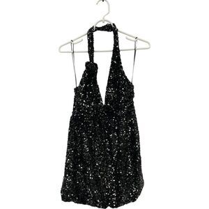 Zara Women Mini Dress XS Black Sequin Halter Party Cocktail Evening 9808/574 NWOT