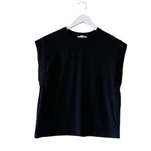 Zara Women’s Black Solid Crewneck Cotton Essential Sleeveless T-Shirt SZ S #1164