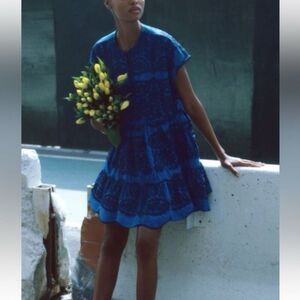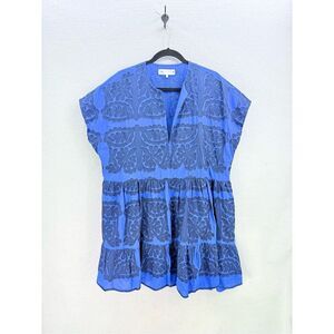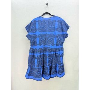 Zara Womens Blue Black Floral Embroidered Baby Doll Mini Dress Size 2XL