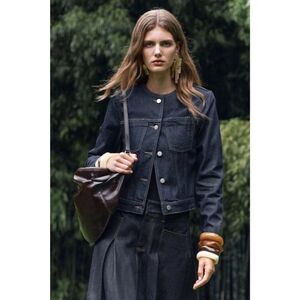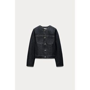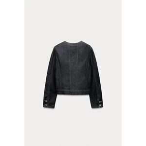 Dark wash denim Jacket ZW Collection round neck long sleeve.