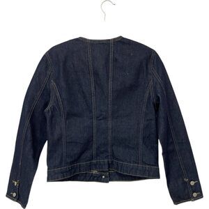 Zara Womens Jean Jacket Size L Blue Denim Cotton Collarless 9863/244 NWOT