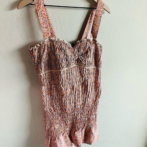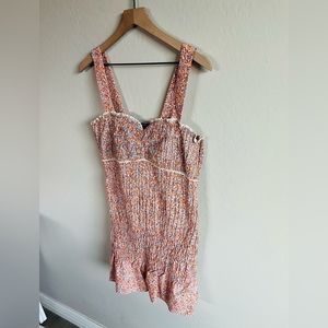 Zara Women’s Orange Floral Ruffle Smocked Mini Bodycon Boho Dress NWOT Size L