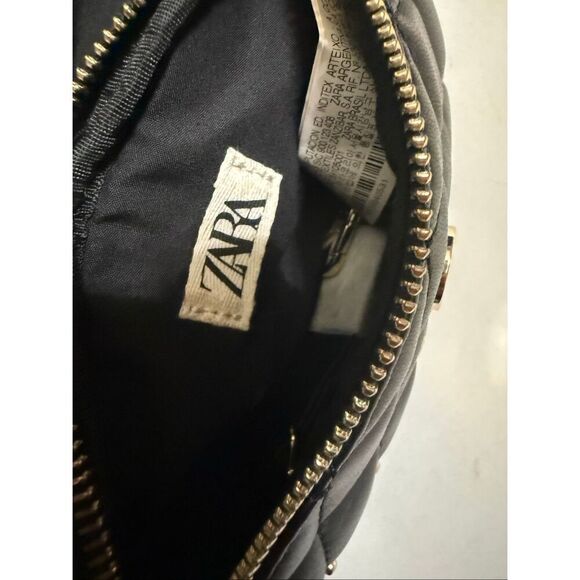 Zara Women's Quilted Studded Flap Belt Bag Crossbody Black OS NWOT