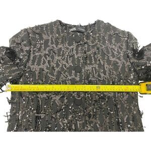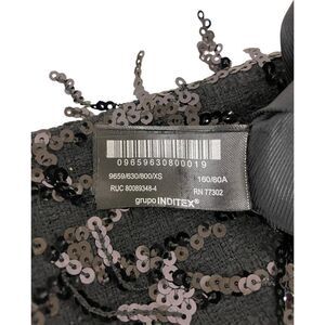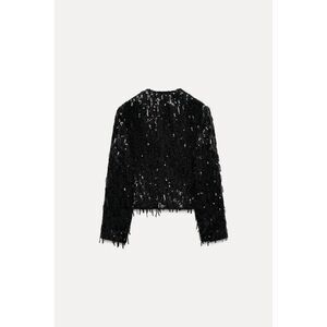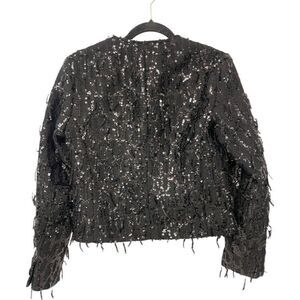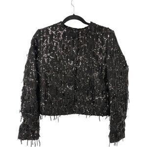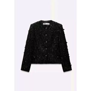 Zara Womens Basic Jacket XS Black Fringed Sequin Textured Cropped 9659/630 NWOT