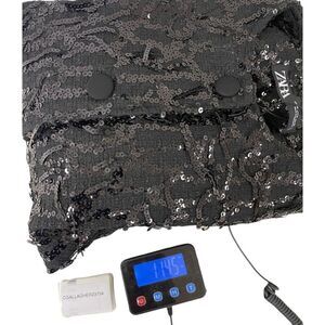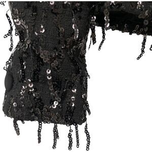 Zara Womens Sequin Jacket Blazer XS Black Fringed Textured Cropped 9659/630 NWOT