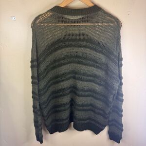 Zara Womens Striped Open Knit Size Small Sweater Olive Black Career Work Wear