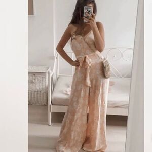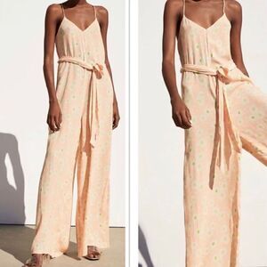 Zara Women’s Orange Sunflower Wide Leg Jumpsuit Spaghetti Strap Size S
