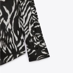 Shirt with lapel collar and long sleeves with cuffs. Front button closure.