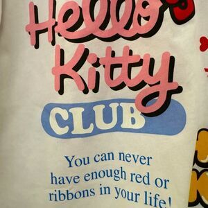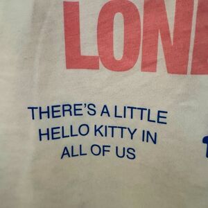 A Zara collaboration with Hello Kitty that has amazing detail. The quality is amazing. The Balck letters on the sleeve are flocked velvet. Some logos are a texturized material. Both front and back bright and colorful details and designs. Excellent condition. Never worn. A true collectors item.