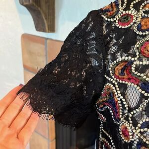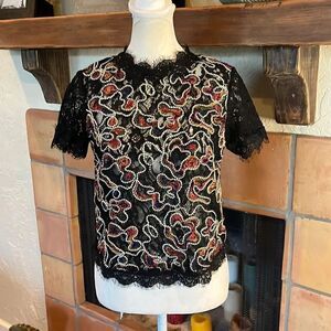 Zara beaded stretch lace top, size S! Super cute! No flaws. zip back closure. Pit to pit 16.5” Sleeve 6.5” Length 19”