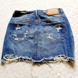****Zara denim skirt. Size small. Floral appliqué. Heavily distressed.****