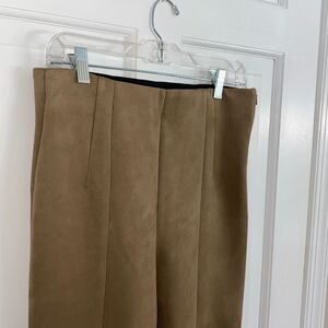 ZARA tan faux suede straight leg high waisted ankle pants with side zipper and zippers at pant hems. In great condition!