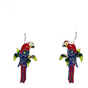 Greenwing Macaw Parrot Dangle Earrings Sterling Silver Plated Enamel Zarlite by Zarah