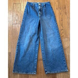 Description: high rise flat front wide leg crop jeans/ belt loops NO belt included
