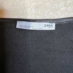 Zara top. Worn once. Great condition. Sz S. Huge pearl makes front drape. Looks like “leather”. Will be great with skinny pants or skirt.