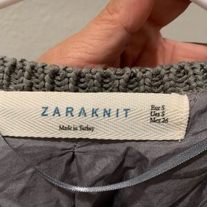 Zara knits size small gray sweater with metallic thread. Great for the holiday’s eyehook snap for the top snap. Lined satin inside with split open in back. Gently worn