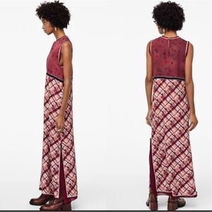 Zara limited edition sleeveless printed dress. Sz M. Great condition. Sleeveless and round neck line. Passementerie Details with contrasting beading. Side vents and hem. Double layers. Back opening and Button closure. 100% viscose - both layers.