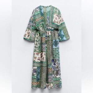 Dress with ruffled round collar and drawcord. V-neckline and long sleeves. Gathered waist with back elastic. Interior lining