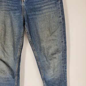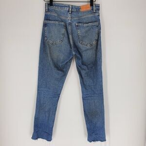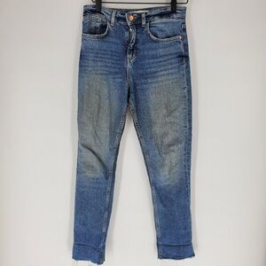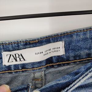 Zara raw hem jeans. Size 2. Can't tell if they have a brown look to them or they are stained. No rips or tears, overall good condition.