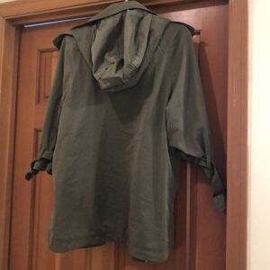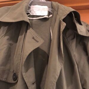Zara woman army green trench. It is a size extra small. It’s super cute and in good condition. Pit to pit is 20 inches Length is 27 inches