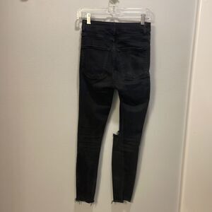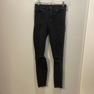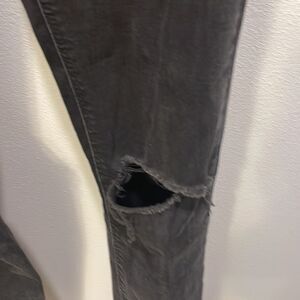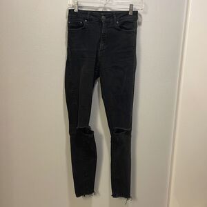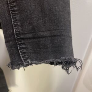Zara woman’s black jeans. They have holes in the knees and are frayed at the bottom of the jeans. They are super cute and in excellent condition. The tags are all faded out.