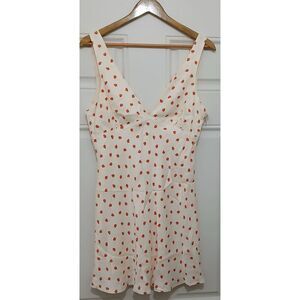 Zara women medium mini flare slip dress beige cream red strawberry viscose silk