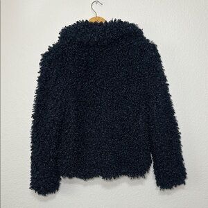 Zare Basic navy blue curly faux fur shaggy button front teddy coat short jacket