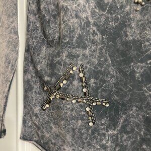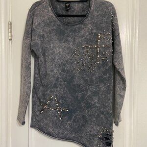 Zarga women's small acid wash asymetric beaded scoop neck with distressed detail