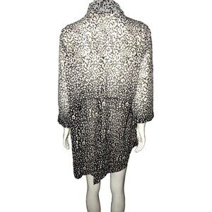 Zashi NWT Blouse Shirt Button Up Sheer Animal Print Ombre New Coverup 3/4 Sleeve