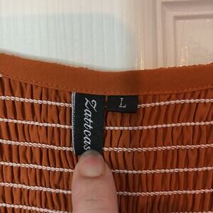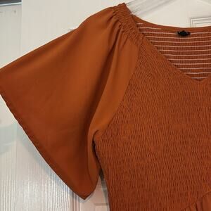 Smocking in front and back. Lined skirt. Flutter sleeves. Ruffle hem. Great condition.