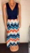 Zattas Cross Tank Maxi Dress sleeveless tie back chevron print bottom multi color navy blue orange green white and beige Summer dress Navy blue top with multicolored chevron bottom flowy, and comfortable with stretch rayon polyester spandex blend