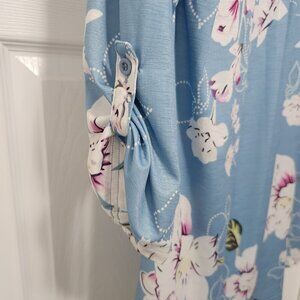 Zattcas Womens 3/4 Roll Sleeve Notch Neck Floral Blouse Shirts Tunic Tops Light