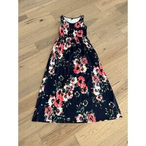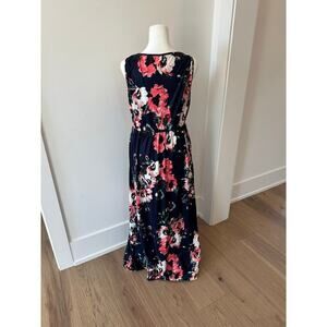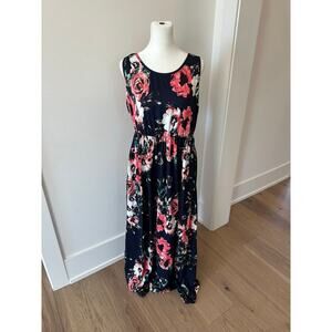 Zattcas Womens Navy Floral Crew Neck Sleeveless Stretch Maxi Dress Size XL