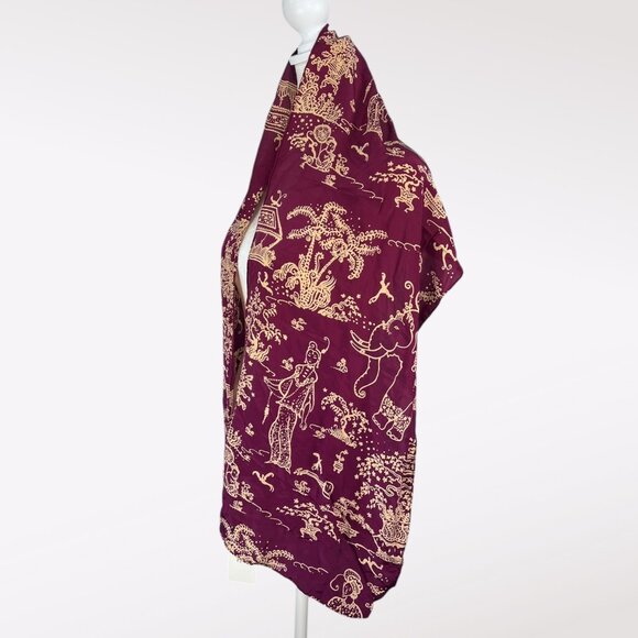Zazou Luxe 100% Silk Scarf Wrap Berry Gold Oriental Toile Print NWT