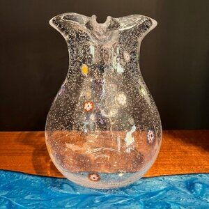 Zazz Millefiori Crate And Barrel ~Hand Blown Bubble Pitcher~ with 4 Glasses